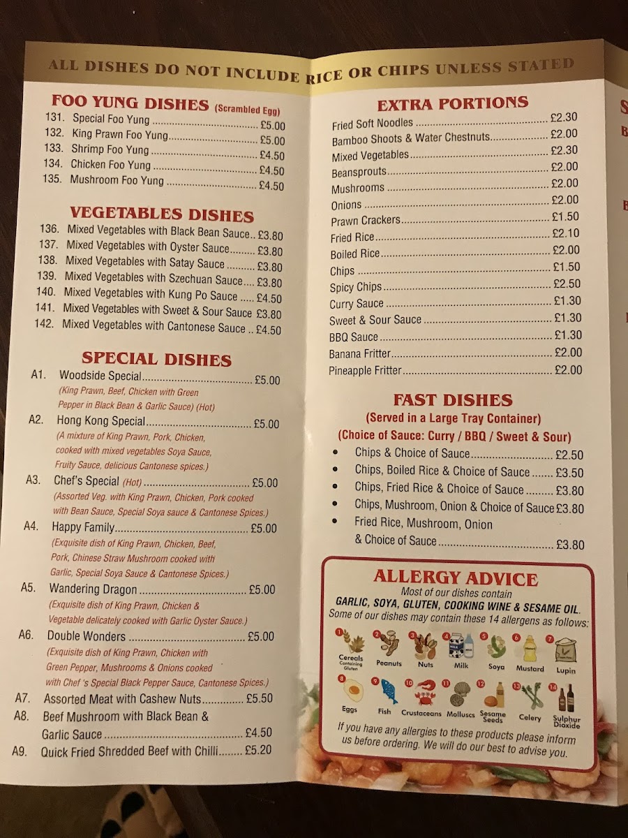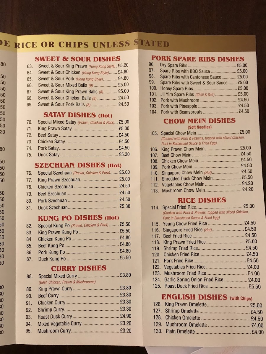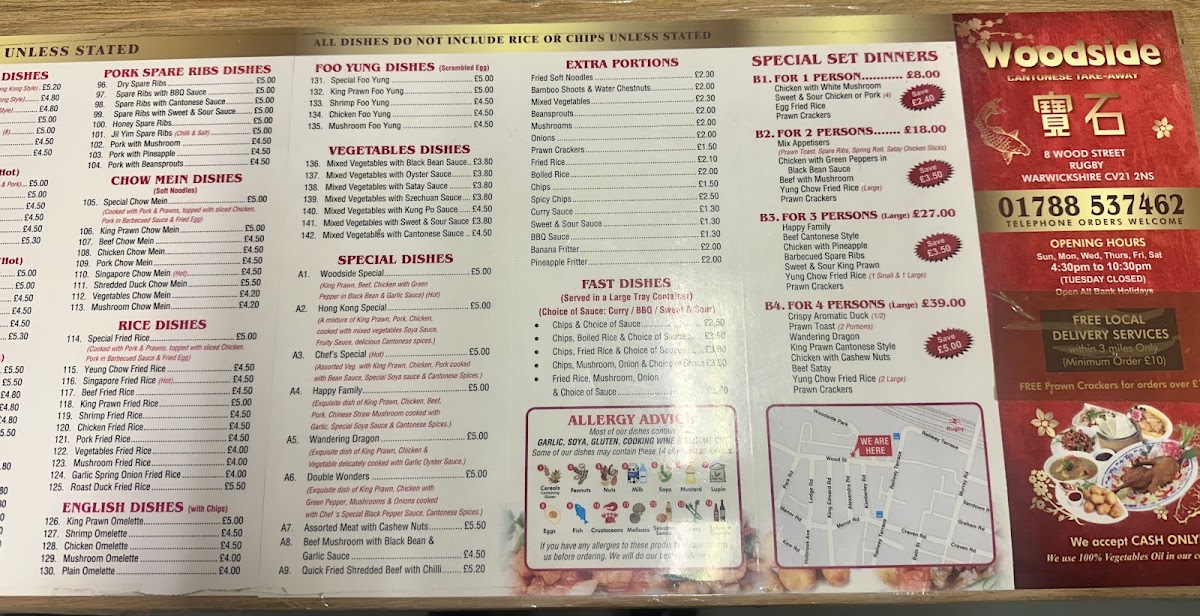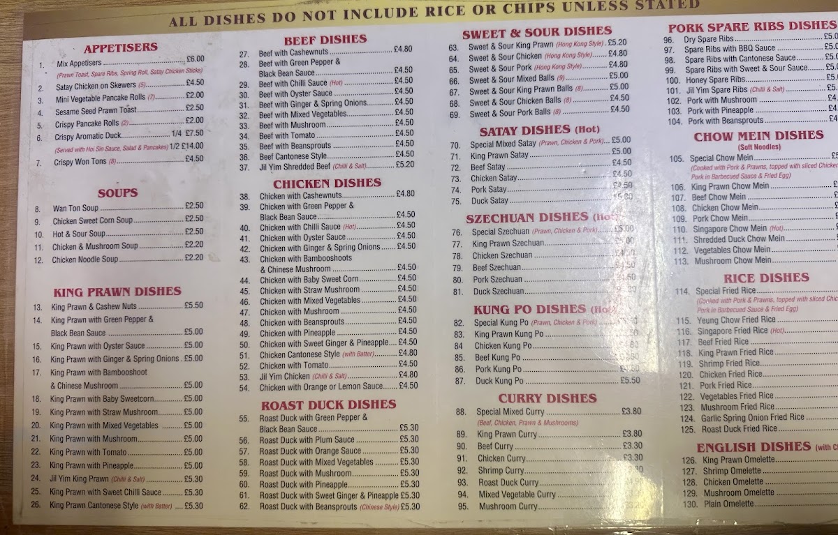 Woodside Cantonese Take-Away offers a diverse and extensive menu, showcasing a wide range of flavorful dishes perfect for all tastes. Their beef dishes include the rich and savory Beef with Cashewnuts and the crispy Dry Spare Ribs. You can also enjoy Spare Ribs with BBQ Sauce or opt for the tangy Spare Ribs with Cantonese Sauce or Sweet & Sour Sauce, with prices for most of these beef options being quite reasonable.